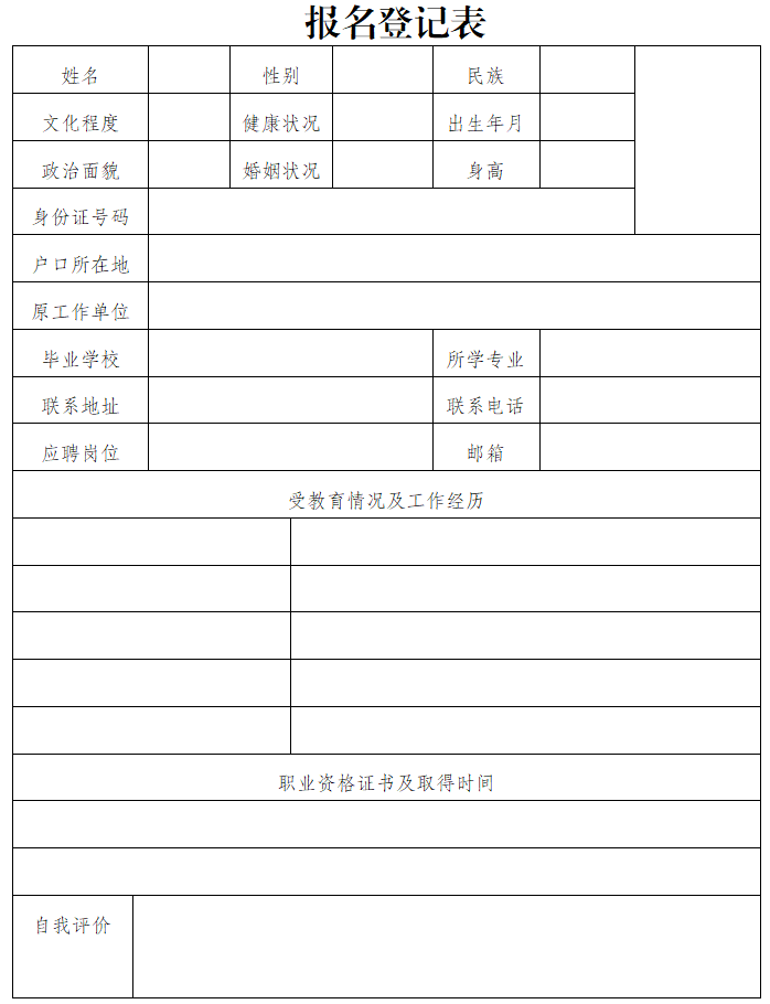 報(bào)名需提供以下材料:報(bào)名登記表(附件);本人身份證、畢業(yè)證書、學(xué)歷學(xué)位證書、所持各類職(執(zhí))業(yè)資格(包括各種職業(yè)注冊證書)、專業(yè)技術(shù)職務(wù)資格證書等證書原件及復(fù)印件、1寸本人照片(按上述要求進(jìn)行文件包壓縮并備注:應(yīng)聘崗位+姓名+聯(lián)系電話號(hào)碼)。如報(bào)名資料不齊全資料審查人將聯(lián)系報(bào)考人員,報(bào)考人員請?jiān)谟行r(shí)限內(nèi)進(jìn)行補(bǔ)交,逾期未補(bǔ)交完整視為放棄考試資格。