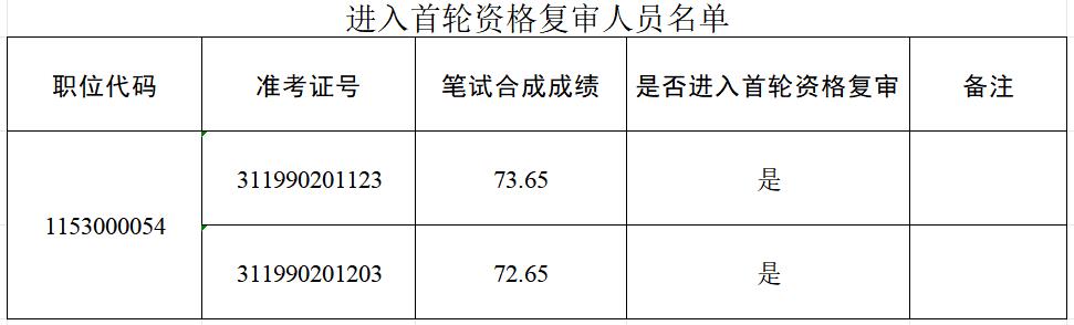 云嶺先鋒“云南省公務(wù)員招錄”報(bào)考省政府研究室相關(guān)崗位(職位代碼:1153000054),根據(jù)筆試成績(jī)從高到低的順序,以招錄計(jì)劃與報(bào)考人數(shù)1:2的比例進(jìn)入首輪資格復(fù)審的人員(筆試成績(jī)并列的同時(shí)進(jìn)入資格復(fù)審),具體名單見(jiàn)附件。