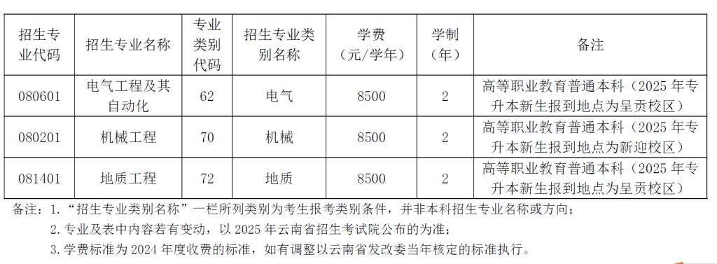4.電氣工程及其自動化、地質(zhì)工程2個(gè)專業(yè),2025年專升本新生報(bào)到地點(diǎn)為呈貢校區(qū);機(jī)械工程專業(yè)2025年專升本新生報(bào)到地點(diǎn)在新迎校區(qū)。