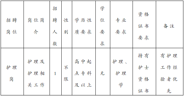 為滿足業(yè)務(wù)工作的需要,彌渡縣德苴鄉(xiāng)衛(wèi)生院面向社會(huì)公開招聘編制外專業(yè)技術(shù)人員,現(xiàn)將有關(guān)事項(xiàng)通告如下: