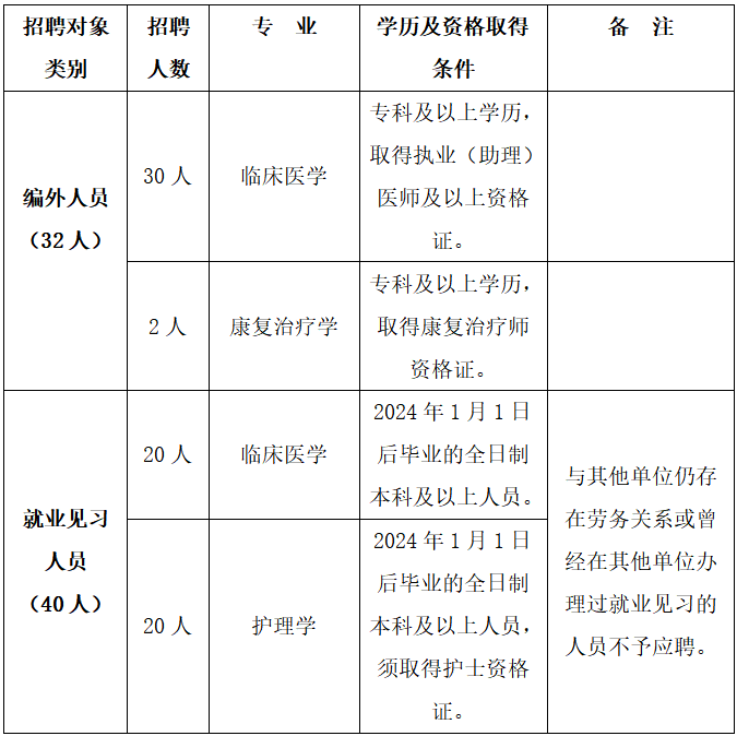 人才隊(duì)伍建設(shè)是醫(yī)院最重要、最直接的生產(chǎn)力,為提升醫(yī)院人才隊(duì)伍建設(shè)及醫(yī)院業(yè)務(wù)發(fā)展需要,現(xiàn)面向社會(huì)公開招聘編外及就業(yè)見習(xí)人員,現(xiàn)將有關(guān)事項(xiàng)公布如下: