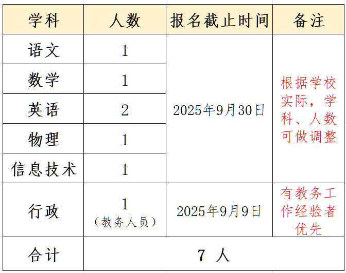 01、招聘學(xué)科及人數(shù)