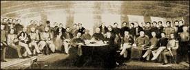圖一:鴉片戰(zhàn)爭(zhēng)失敗后,1842年8月29日,耆英代表清王朝和英國(guó)的代表璞鼎查在“康華利”號(hào)上簽訂了喪權(quán)辱國(guó)的《南京條約》。