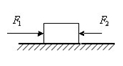 1. 如圖所示,一物體靜止在水平面上,水平方向分別受F1及F2兩個推力作用。F1=12N,F2=5N,木塊仍處于靜止,則物體受到的靜摩擦力f=,方向。