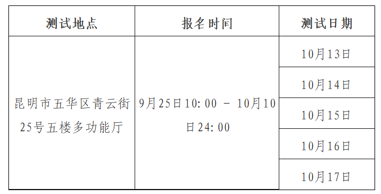 3.2025年10月計劃測試5場,共6000人次。如因特殊情況需要暫停或取消考試,中心將通過“昆明市教育資源公共服務平臺”及“昆明市普通話培訓測試中心”微信公眾號,發(fā)布暫停或取消測試的公告。已完成報名繳費的,中心將擇日安排測試。
