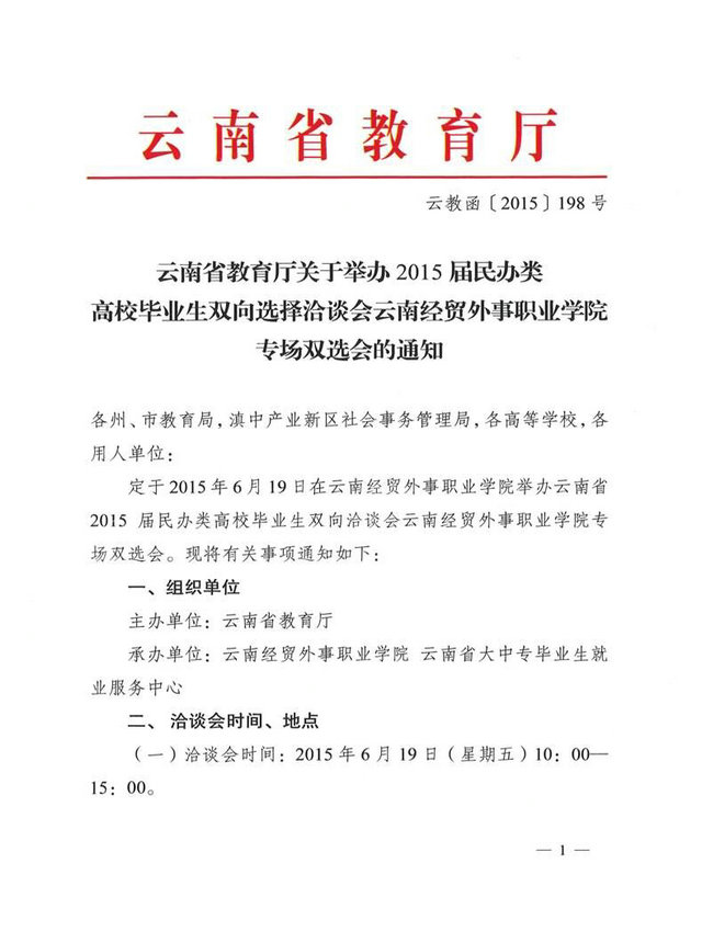 云南省2015屆民辦類高校畢業(yè)生雙向選擇洽談會