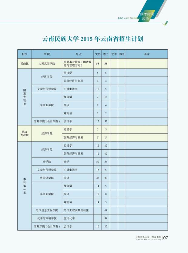云南民族大學(xué)2015年普高本專科招生計(jì)劃(云南?。?/h1>