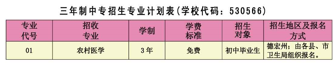 德宏職業(yè)學(xué)院2015年三年制中專招生專業(yè)計(jì)劃表