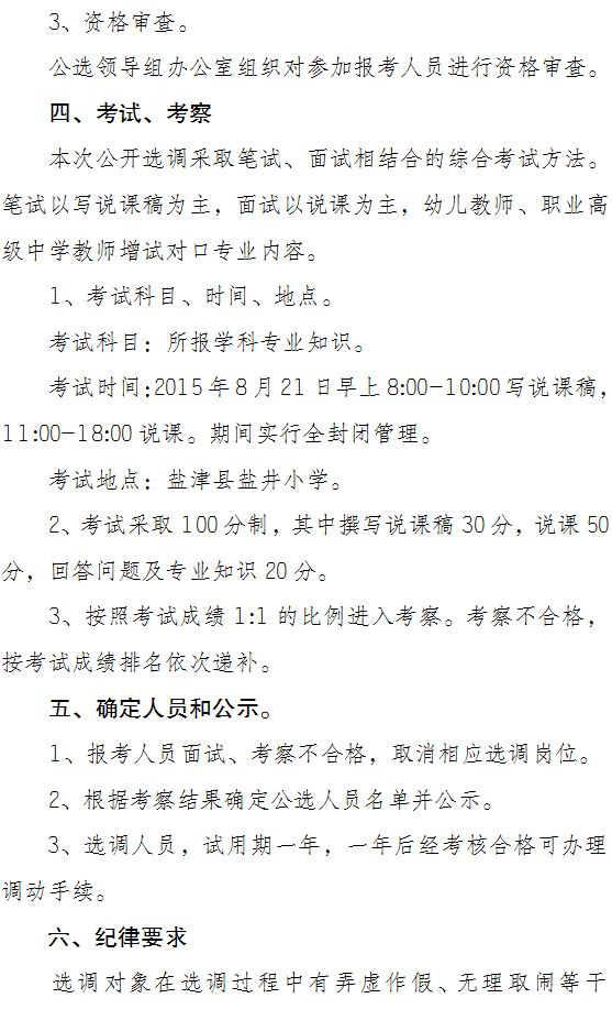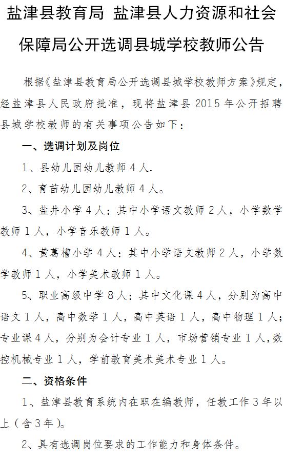 鹽津縣2015年公開選調(diào)縣城學(xué)校教師公告