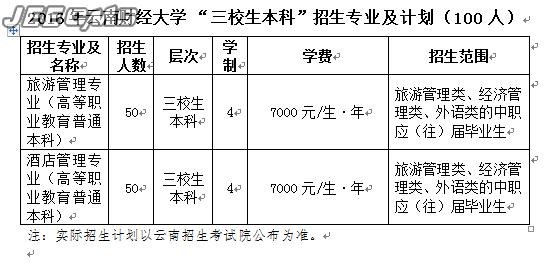 云南財經(jīng)大學旅游與酒店學院2016年三校生招生簡章