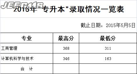 云南財經(jīng)大學2015年“專升本”錄取情況一覽表