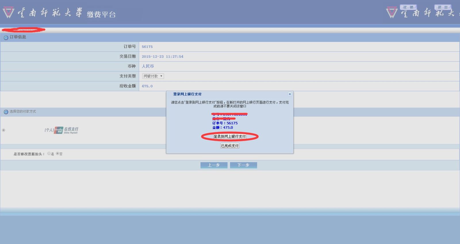 3.登錄網(wǎng)上銀行支付按照銀聯(lián)提示進行繳費。
