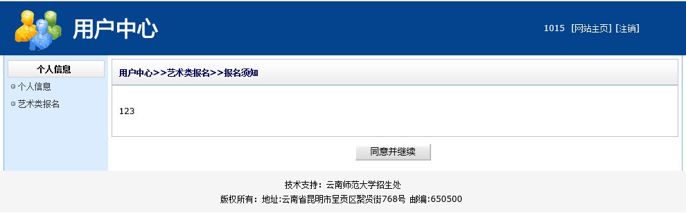仔細閱讀報名須知,閱讀完畢后,點擊“同意并繼續(xù)”按鈕。