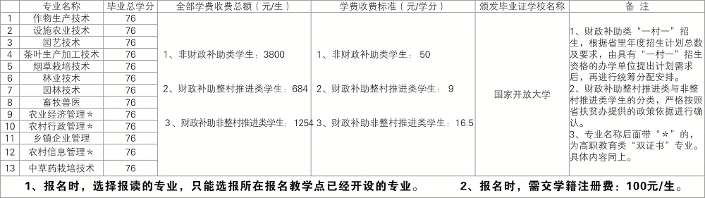 “一村一名大學(xué)生計(jì)劃”專科專業(yè)13個(gè)☆招生對(duì)象:具有高中、職高、中專、技校及以上學(xué)歷的農(nóng)村籍青年。