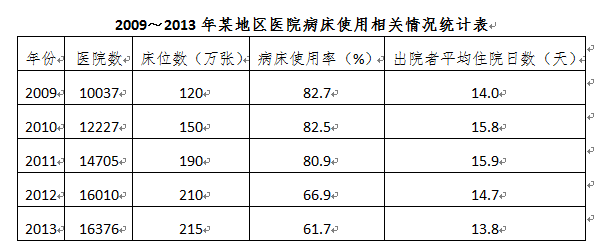 A.2009~2013年,該地區(qū)的病床使用率逐年下降