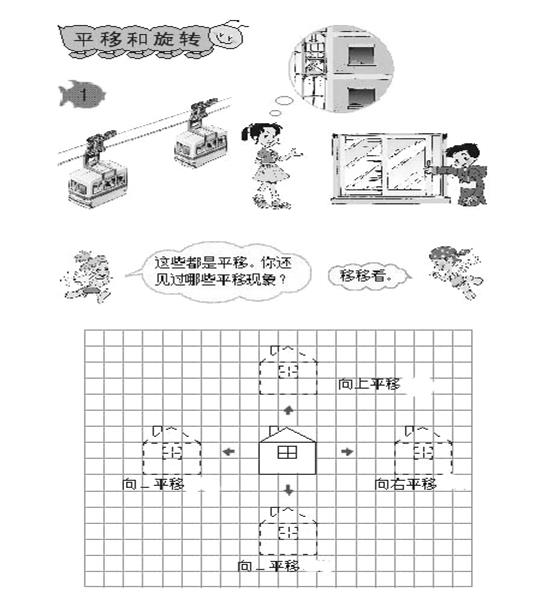 教材:人教版二年級(jí)下冊(cè)《平移和旋轉(zhuǎn)》片段內(nèi)容: