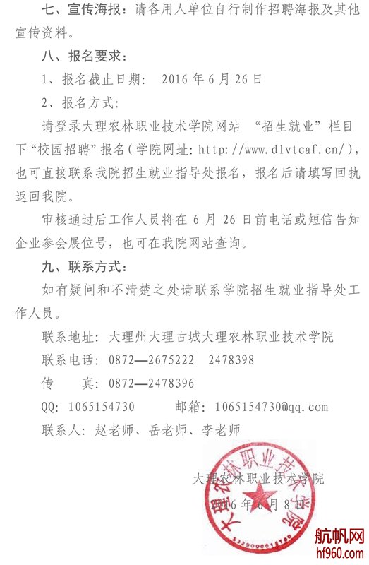 大理農(nóng)林職業(yè)技術學院2016年大中專生就業(yè)洽談會邀請函