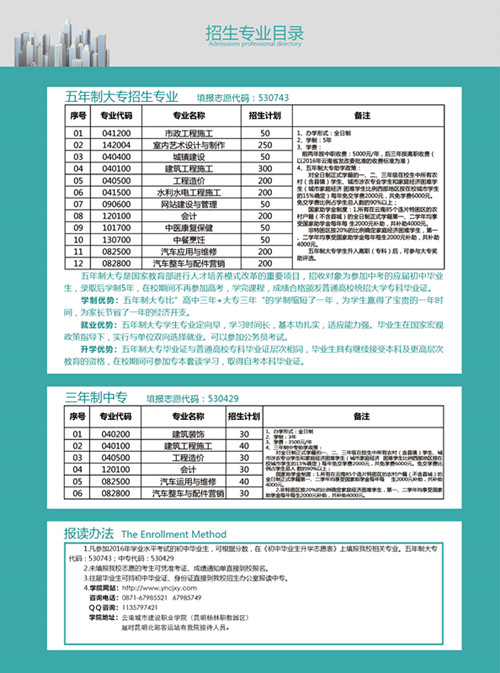 云南城市建設(shè)職業(yè)學(xué)院2016年五年制、中專招生簡章