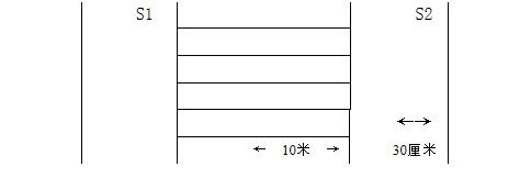 場(chǎng)地器材:10米長(zhǎng)的直線跑道若干,在跑道的兩端線(S1和S2)外30厘米處各劃一條線(圖1)。木塊(5厘米×10厘米)每道3塊,其中2塊放在S2線外的橫線上,一塊放在S1線外的橫線上。秒表若干塊,使用前應(yīng)進(jìn)行校正。