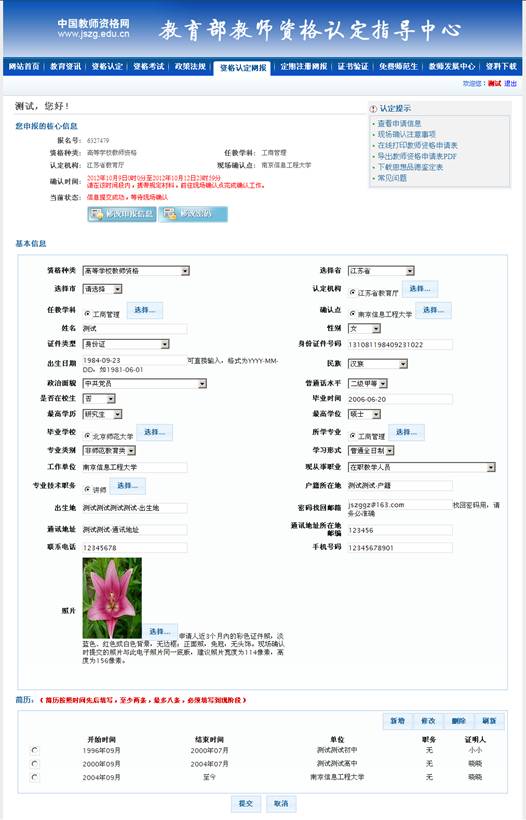四、申請人登錄網(wǎng)上報名系統(tǒng)后修改和查看申請信息