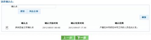確認點列表中會顯示認定機構網(wǎng)報時間段內(nèi)所有參與確認工作的確認點信息。這些信息包括確認點名稱、確認范圍、確認開始和結束時間。申請人需根據(jù)各現(xiàn)場確認點列出的確認范圍,選擇屬于自己的確認點,并點擊該確認點前的單選按鈕,然后點擊“下一步”按鈕,進入申報第五步。
