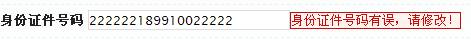申請(qǐng)人填寫(xiě)注冊(cè)信息時(shí),若在填寫(xiě)身份證件號(hào)碼時(shí)出現(xiàn)以下任何一種提示: