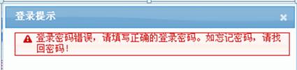 1、登錄時(shí)出現(xiàn)“登錄密碼錯(cuò)誤,請?zhí)顚懻_的登錄密碼。如忘記密碼,請找回密碼的提示,如下圖,怎么辦?