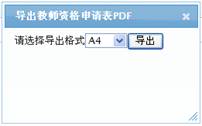 申請人登錄網(wǎng)上報名系統(tǒng)后,在頁面右上方“認(rèn)定提示”欄中有“導(dǎo)出教師資格申請表PDF”鏈接,點(diǎn)擊該鏈接,根據(jù)申請表打印紙張大小要求,選擇導(dǎo)出格式,點(diǎn)擊“導(dǎo)出”按鈕,教師資格認(rèn)定申請表則以PDF的格式呈現(xiàn),點(diǎn)擊PDF閱讀器里的保存按鈕,教師資格申請表則以PDF格式保存到本地機(jī)上。(您的計(jì)算機(jī)里必須安裝PDF閱讀器才能打開下載的PDF格式申請表)