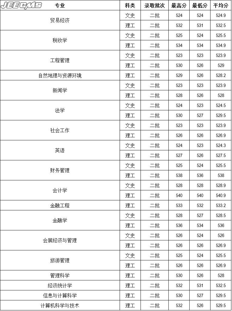 云南財經(jīng)大學(xué)2016年江西省錄取情況一覽表