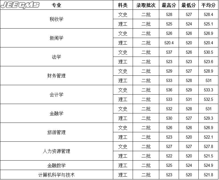 云南財經(jīng)大學2016年安徽省錄取情況一覽表