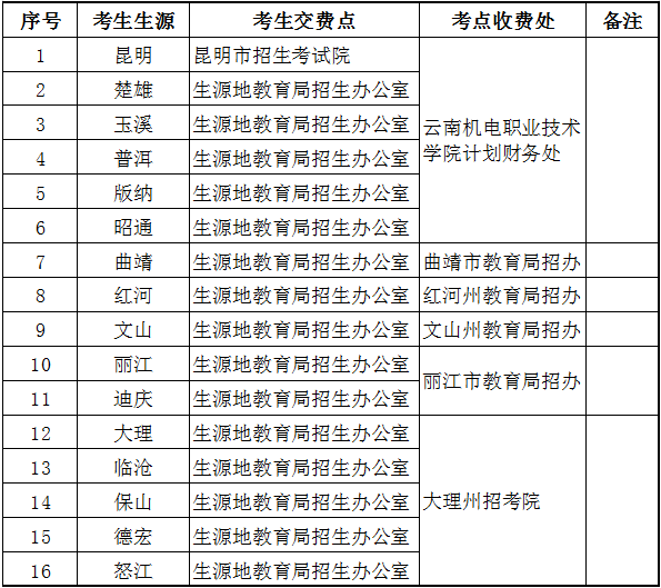 2、高職單招考試費(fèi):按《云南省物價(jià)局省財(cái)政廳省教育廳關(guān)于我省高等院校單獨(dú)招生考試及自主選拔錄取考試收費(fèi)標(biāo)準(zhǔn)的通知》(云價(jià)收費(fèi)〔2012〕35號(hào))規(guī)定,單獨(dú)招生考試費(fèi)收費(fèi)標(biāo)準(zhǔn)為130元/人.次。我院委托當(dāng)?shù)乜h(市、區(qū))招辦代為審查報(bào)考我院?jiǎn)为?dú)招生考試的考生資格,代為收取考試費(fèi)130元/人.次,報(bào)名結(jié)束,由當(dāng)?shù)乜h(市、區(qū))招辦將報(bào)名考生名單及報(bào)名費(fèi)交到相應(yīng)考點(diǎn)收費(fèi)處。具體如下表: