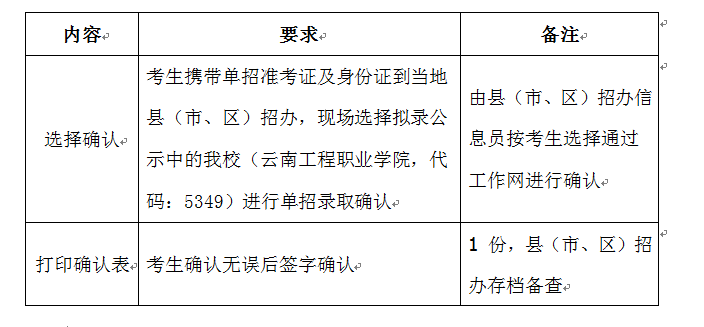 (二)2017年4月5日8時—4月7日18時單招擬錄院校專業(yè)確認。云南省招考頻道網(wǎng)上公示擬錄名單中的考生,必須到當(dāng)?shù)乜h(市、區(qū))招辦進行簽字確認,被兩所及以上院校擬錄公示的考生,只能選擇一所院校進行簽字確認。不參加簽字確認的考生視為自動放棄單招錄取。