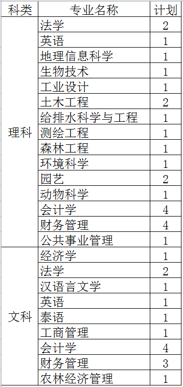 西南林業(yè)大學(xué)2024年普通本科分專業(yè)招