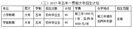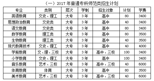 2017年麗江師范高等??茖W校招生計劃、招生專業(yè)和收費標準
