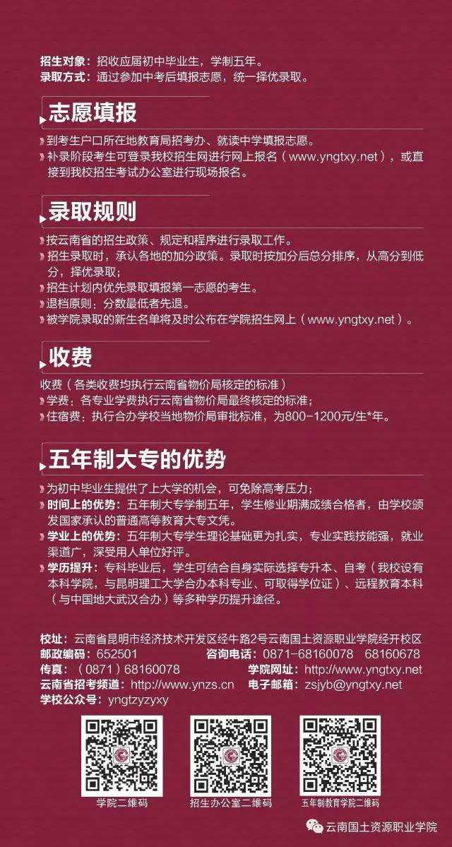 2017年云南國土資源職業(yè)學院五年制招生簡章