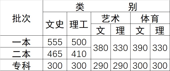云南省2017年普通高校招生錄取最低控制分?jǐn)?shù)線
