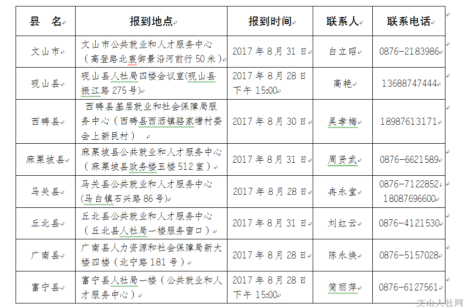 (五)按時報到,逾期未報到者,視為自動放棄招募資格。涉及到選崗的,按各縣(市)“三支一扶”協(xié)調(diào)管理辦公室的要求辦理選崗事宜,如有特殊情況,需提前與文山州“三支一扶”協(xié)調(diào)管理辦公室聯(lián)系。