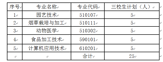 玉溪農(nóng)業(yè)職業(yè)技術(shù)學(xué)院2018年單獨招收三校生計劃表