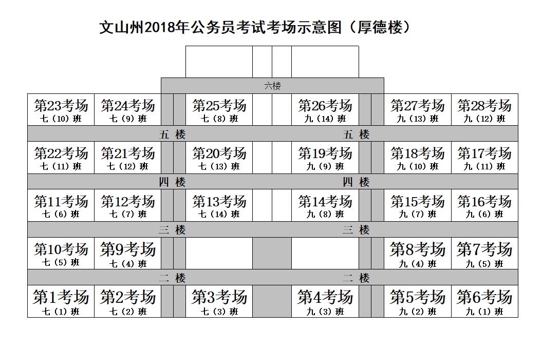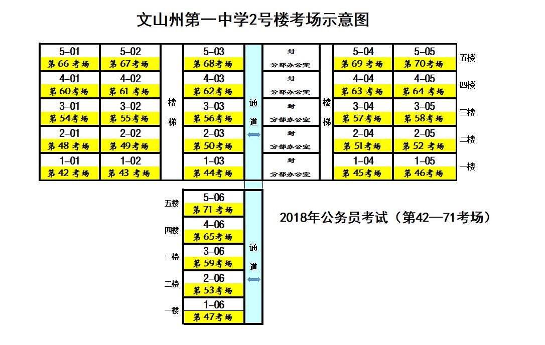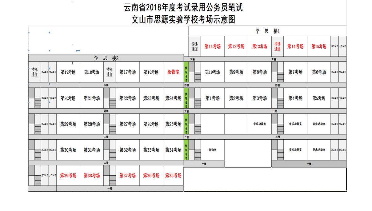 2018年云南省公務(wù)員考錄文山考區(qū)筆試各考點(diǎn)考場示意圖