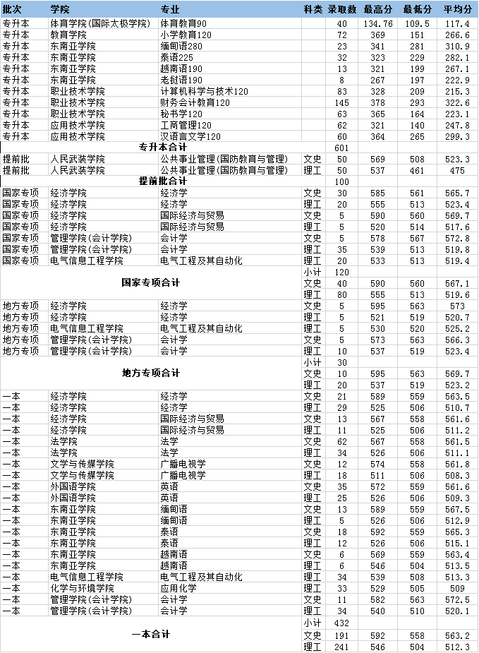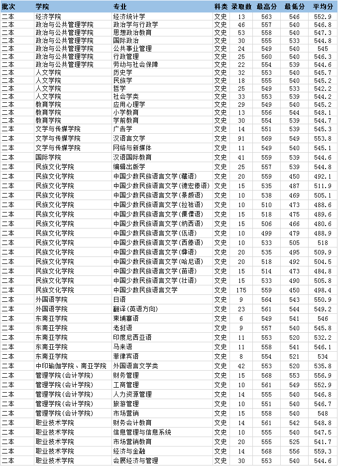 2023年云南民族大學(xué)招生錄取分?jǐn)?shù)統(tǒng)計(jì)