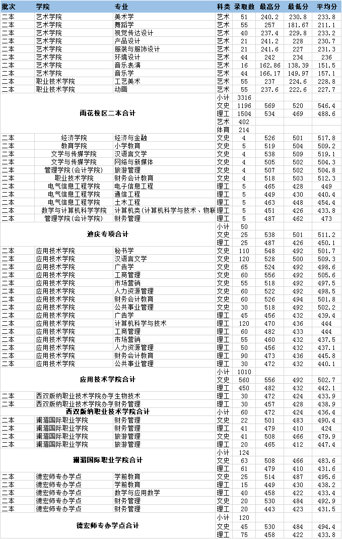 2022年云南民族大學(xué)錄取分?jǐn)?shù)統(tǒng)計(jì)表