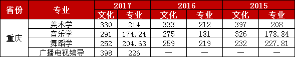 藝術(shù)類近三年錄取專業(yè)最低分情況