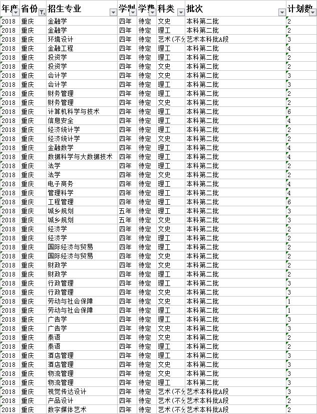 云南財(cái)經(jīng)大學(xué)2018年本科分省招生計(jì)劃表(重慶市)