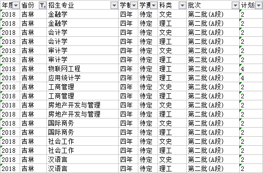 云南財經(jīng)大學2018年本科分省招生計劃表(吉林)