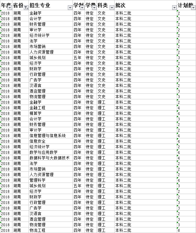 云南財(cái)經(jīng)大學(xué)2018年本科分省招生計(jì)劃表(湖南)