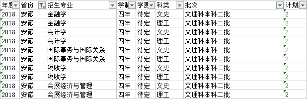 云南財經(jīng)大學(xué)2018年本科分省招生計劃表(安徽?。?/h1>