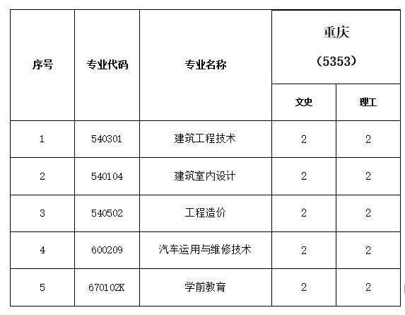 云南城市建設職業(yè)學院2018年高職(專科)重慶分專業(yè)計劃表