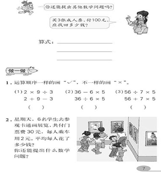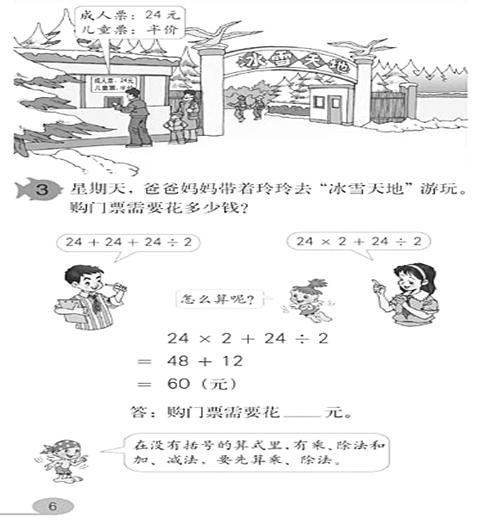 以下是人教版四年級(jí)下冊(cè)《四則運(yùn)算》單元的例3: