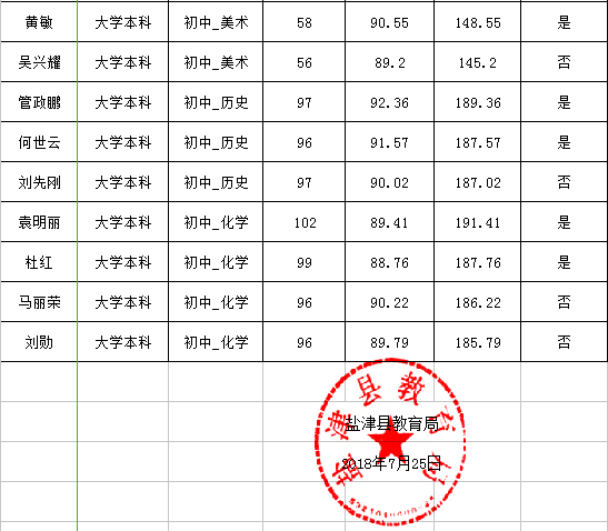 昭通市鹽津縣2018年特崗教師招聘總成績及體檢名單