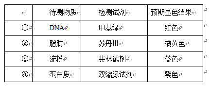 待測物質(zhì) 檢測試劑 預(yù)期顯色結(jié)果